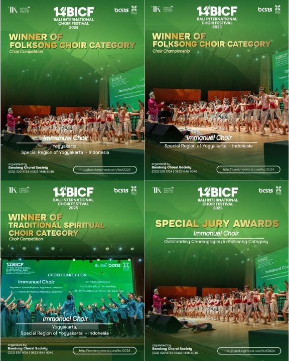 Yogyakarta, 2025 – Prestasi membanggakan kembali diraih oleh Paduan Suara Mahasiswa Universitas Kristen Immanuel (Immanuel Choir) dalam ajang bergengsi 14th Bali International Choir Festival 2025. Pada kompetisi internasional ini, Immanuel Choir sukses membawa pulang sejumlah penghargaan bergengsi, di antaranya: